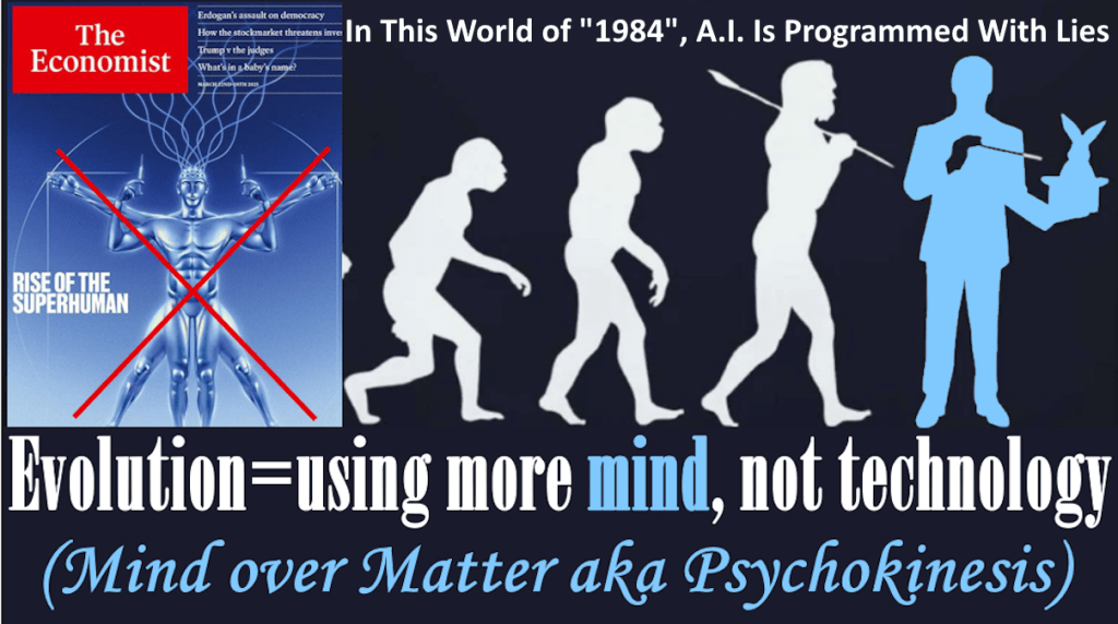I’m ready to share the knowledge I’ve gained over the many years, and much of what I’ve learned was gained only from experience and can’t be found in any books. Increase your understanding of the nature of reality and energy, and learn how to perform a mental skill that defies mainstream science and physics, with A.I. saying it can’t be possible. This shows just one example of how A.I. can be dangerous when it’s programmed with lies by a corrupt government, because this holds back true human evolution: