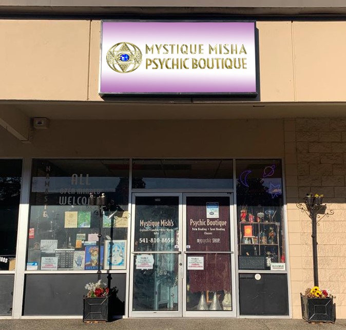 [Picture Above:] I’ve demonstrated for psychics, such as the owner of Mystique Misha Psychic Boutique. “Wow, you’re really talented!”.